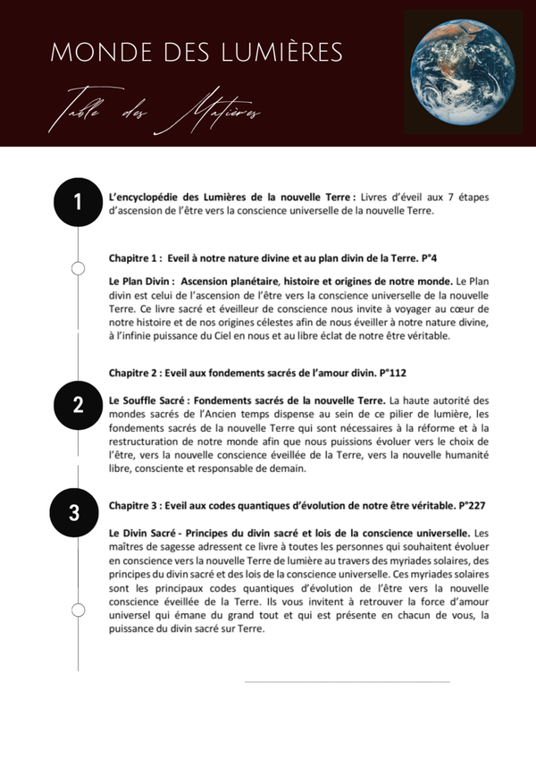 Découvre l'histoire et les origines de notre monde afin de t'éveiller à ta nature divine, à l'infinie puissance du ciel en toi, au plan divin de la Terre, à la réalité quantique de notre univers et à la conscience universelle de l'amour divin.