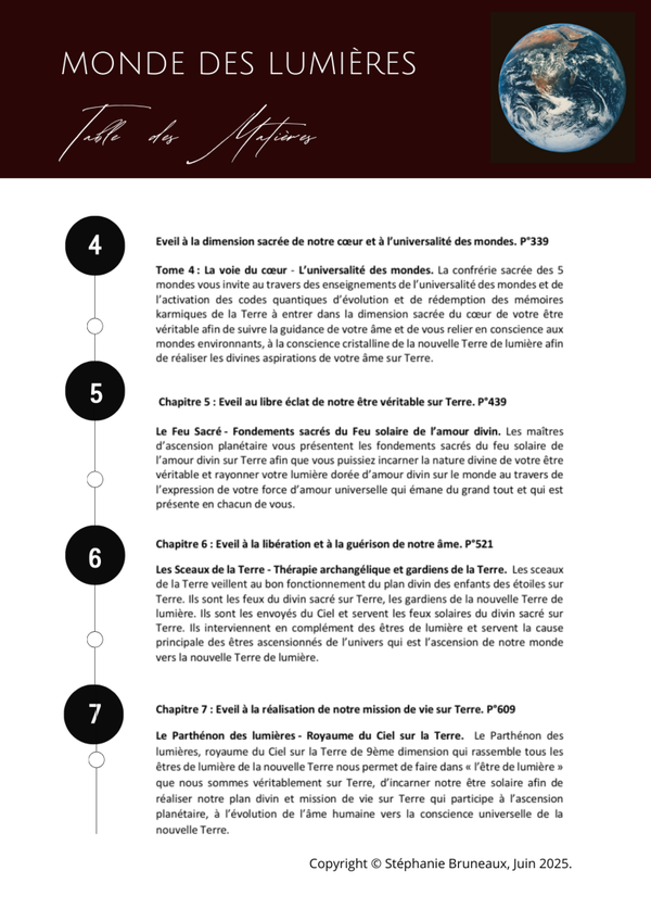 Découvrez le monde des lumières au travers des enseignements des grands êtres de l'univers qui vous éveilleront à l'infinie puissance du ciel en vous et à la conscience universelle de l'amour divin.