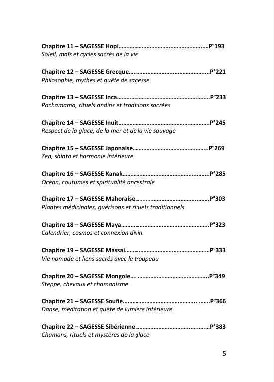 À travers des récits inspirants, des rituels sacrés et des méditations guidées, ce voyage vous reconnecte à la profondeur des enseignements des peuples ancestraux. Chaque chapitre est une porte ouverte vers la connaissance, la guérison intérieure et l’éveil spirituel. Que vous soyez curieux des traditions du monde, en quête de sagesse ou désireux de nourrir votre âme, ce livre est un compagnon précieux pour comprendre, ressentir et intégrer la richesse des médecines spirituelles et des sagesses anciennes.